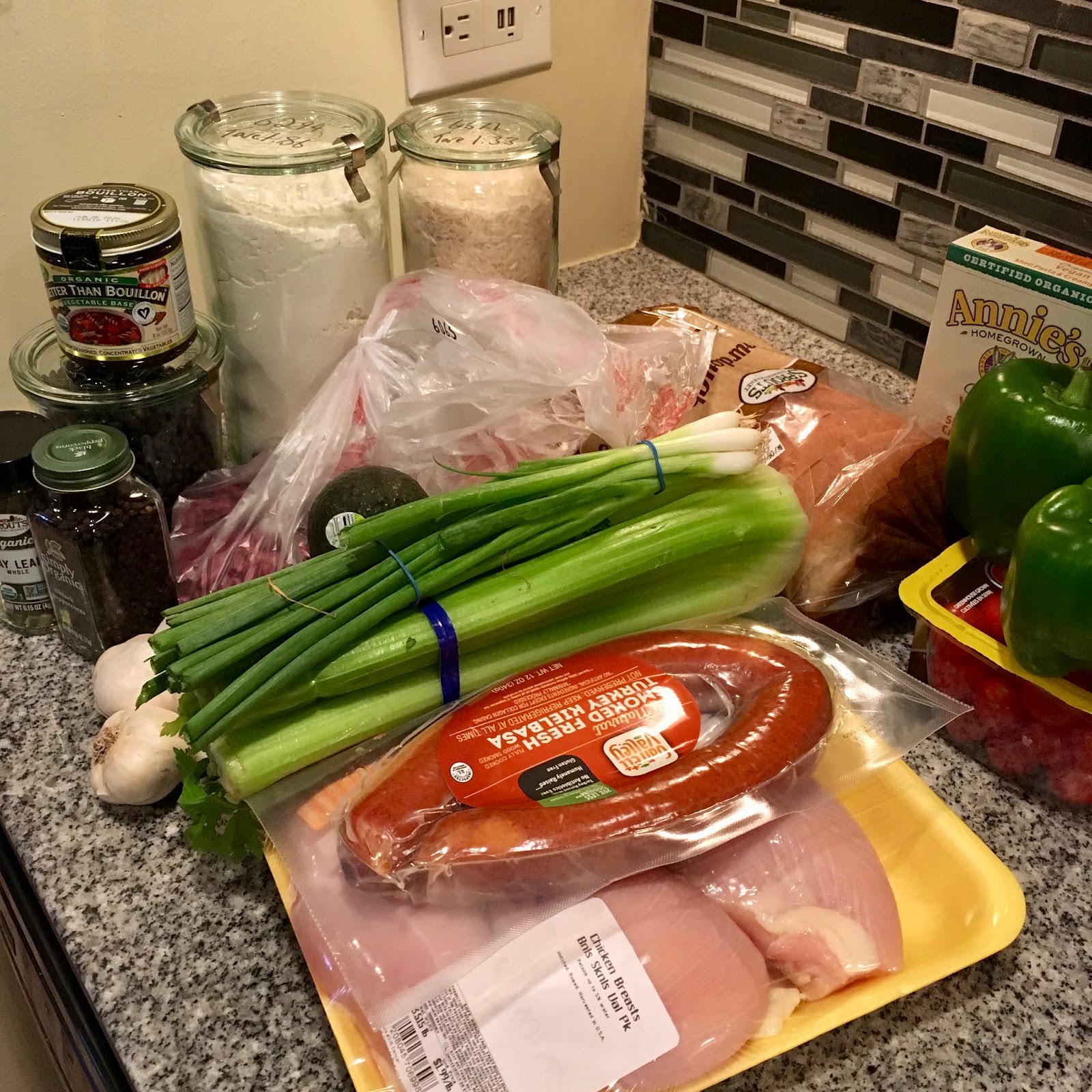 Mr. Smith generally handles the grocery shopping for us and he’s a real sport about it. As I’ve become more environmentally aware, he has started taking our reusable grocery bags with him and uses our glass jars for the bulk bins.