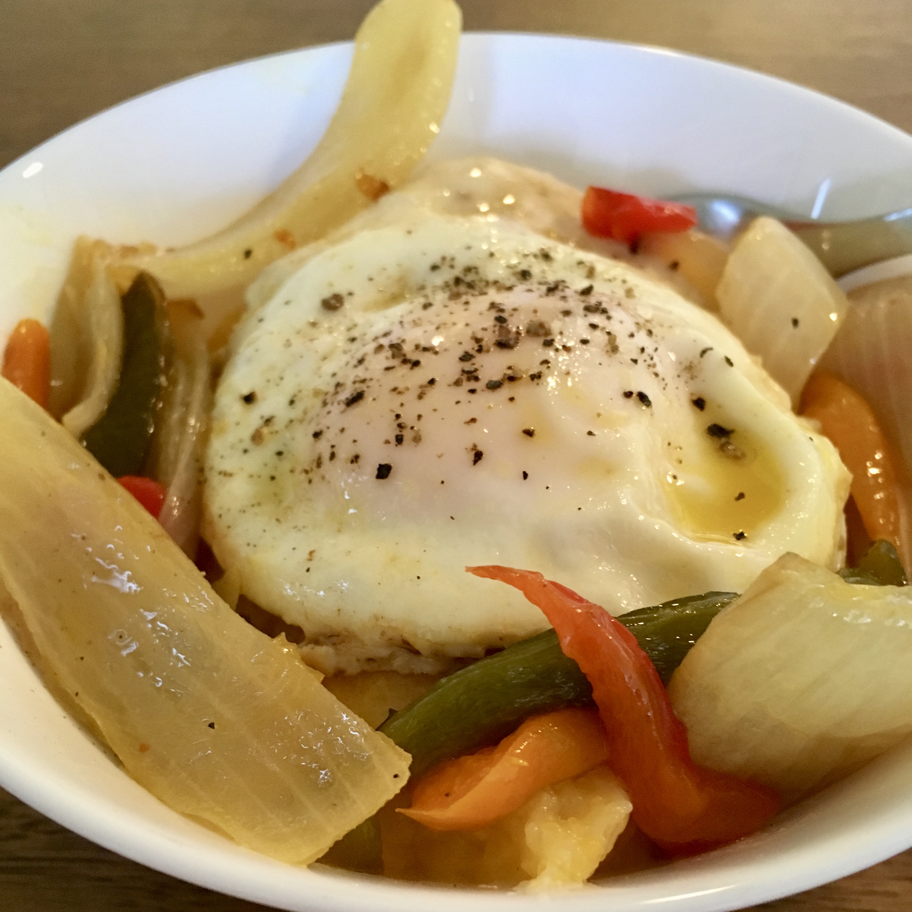 I can’t tell if he’s really happy about being snuggled or if he’s looking longingly at his semi-filled kong. If I had the foresight, I would have taken this picture with the kong in focus. What do you think? Our new, unbreakable pepper grinder. Our pepper mill broke while I getting dinner around and since I cook a LOT it needed to be replaced. At first, I treated it like Alton Brown had popped in my kitchen for an episode of Cutthroat Kitchen and someone had sabotaged me by taking away my pepper mill. Instead, I innovated and used the bottom of the ice cream scoop to crack the peppercorns. Alas, this was not a long term solution. Our new pepper grinder is cast iron and more likely to break me before breaking itself.We had our monthly small dog meet-up this week. As usual, Sisko was jazzed about going and playing with his friends.This breakfast was completely uncalled for and complete delicious. I roasted the veggies on Sunday to cut down on my daily meal prep. All I had to do was make the grits, fry eggs, and reheat the veggies. It was a “stick to your ribs” kind of meal.