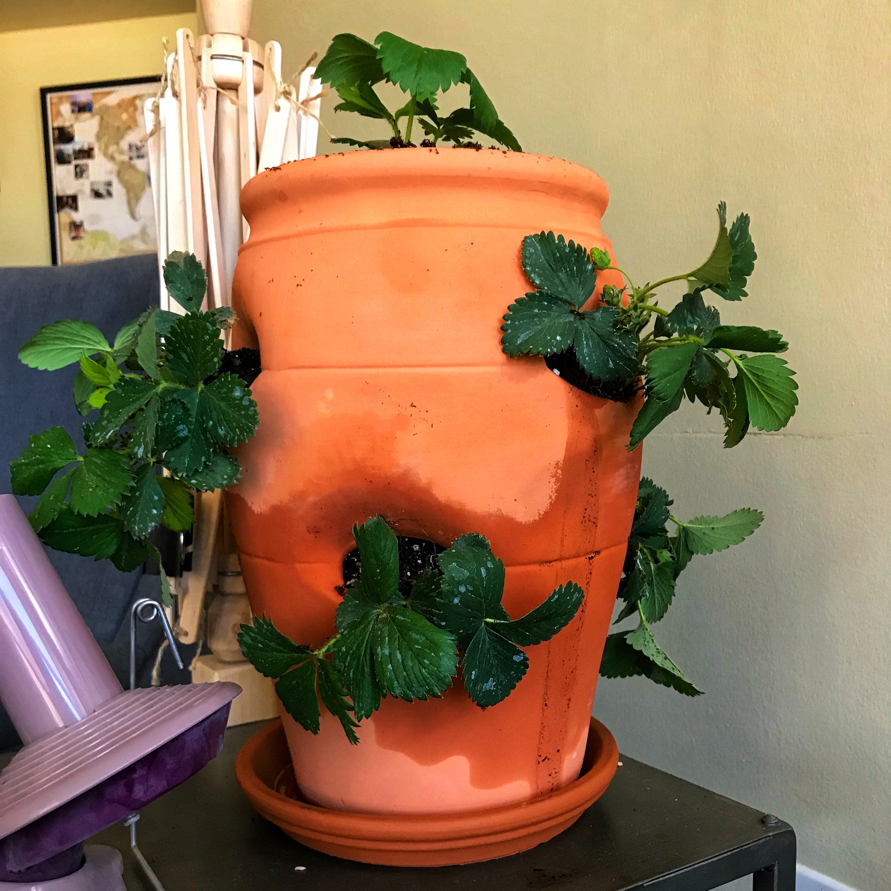 I did end up buying a strawberry plant and a group of five succulents. I sort of couldn’t help mysef. Of course, new plants meant that I needed a place to keep them. After a trip to the home improvement store, I decided that I needed at least four more strawberry plants. I’m incorrigible, I know! My Denver-based brother and Justin are both super excited about the prospect of fresh strawberries. It’s a good thing since each plant could produce up to 200 (!) strawberries.