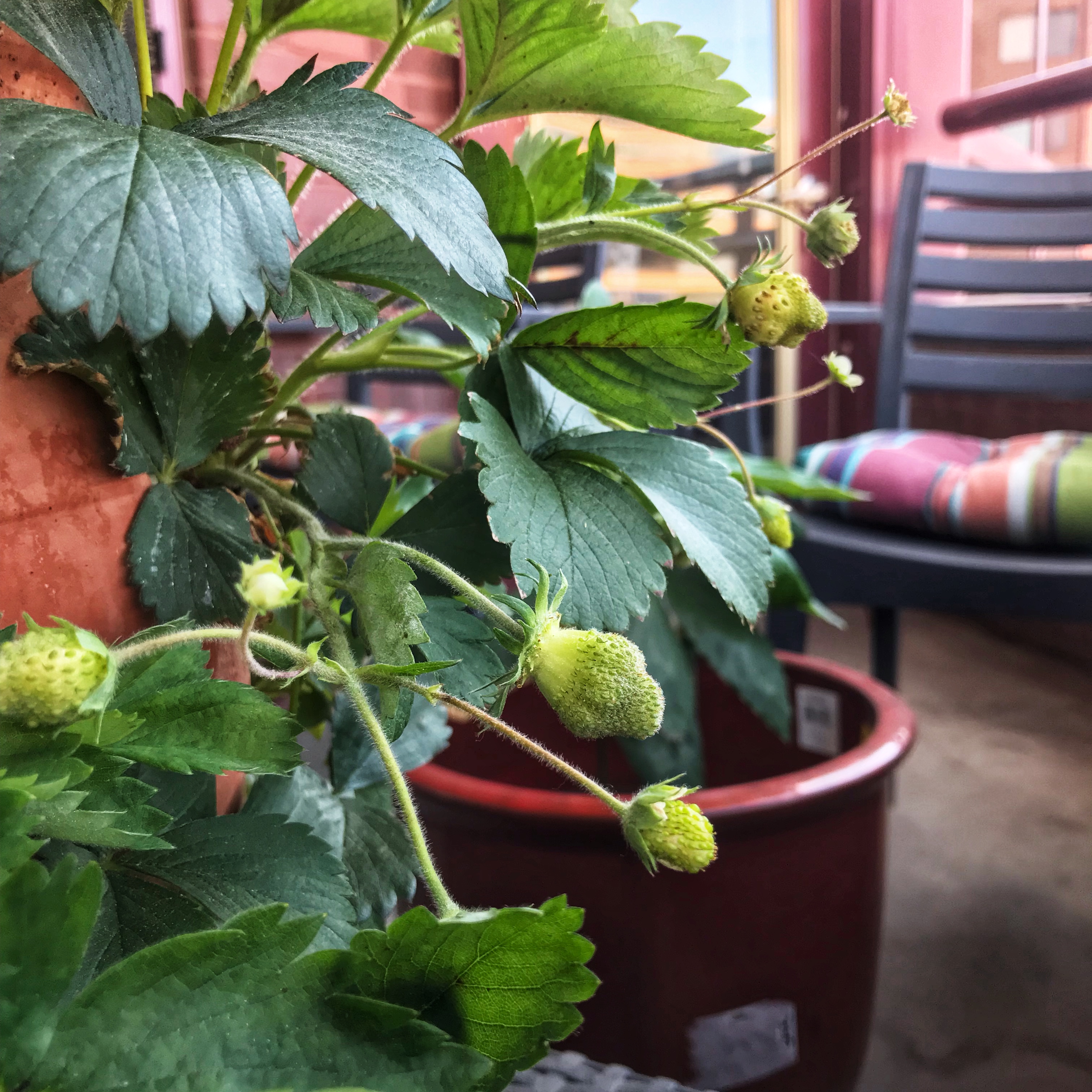 This is my first year of strawberry growing and I’ve already learned quite a bit. The most important thing I’ve learned is that strawberries really do need LOTS of sunshine and the few hours per day that the planter is getting on the balcony isn’t enough. I’m hoping that I’ll be able to extend their growing season by getting them more sunlight at the new house after we move there next month. That’s right! We got a closing date for the house. We’re moving on August 30th and I couldn’t be happier.