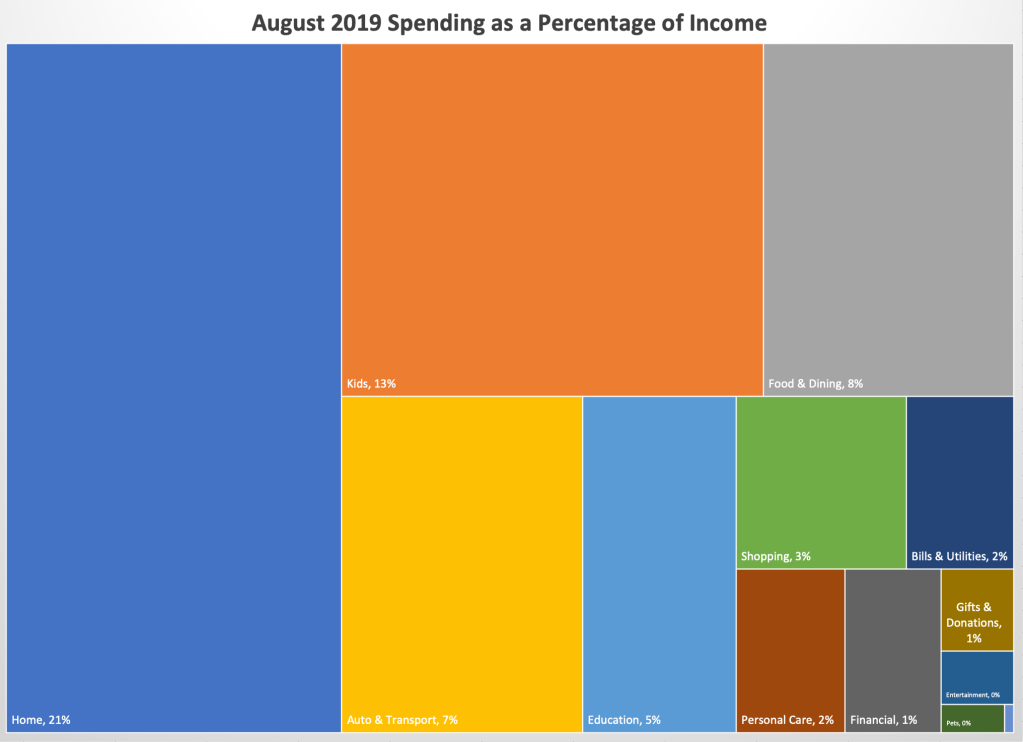 You might wonder why I’m reporting percentages and not the actual numbers. Personally, I think that percentages make a lot more intuitive sense for most people. For example, we often see general financial rules expressed as percentages such as the rule that your housing expenses should be no more than 30 percent of your gross income.