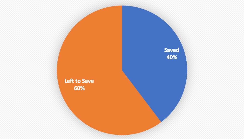As of this month, we are 40 percent of the way to our fi number. This is two percent lower than last month.